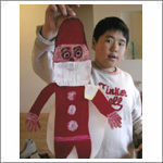 SHくんはサンタクロースの係り。ほらもうできた、すてきなサンタさん。 |