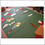 | 大きな緑色の紙にツリーの形を描くのは、H子ちゃんの担当。 |