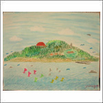 Y美ちゃんは教室から見える能古の島を描きました。のんびりとした感じがしますね。 |