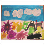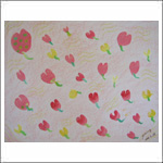 これも今の感じ?かわいいお花畑。今日は5枚も描きました、すごいエネルギーですね。 |