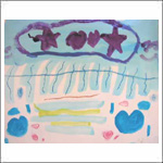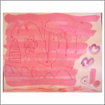 | S子ちゃん、何かを描いてから上から赤い絵の具を塗りました。何だったのかな? |