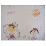 | Mちゃんは大好きなジャミちゃんを描きました。 |